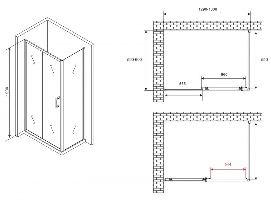 Душевой уголок ABBER Schwarzer Diamant AG301305-S605 130x60см хром