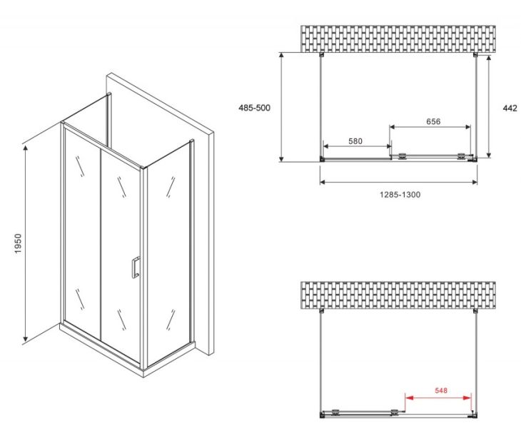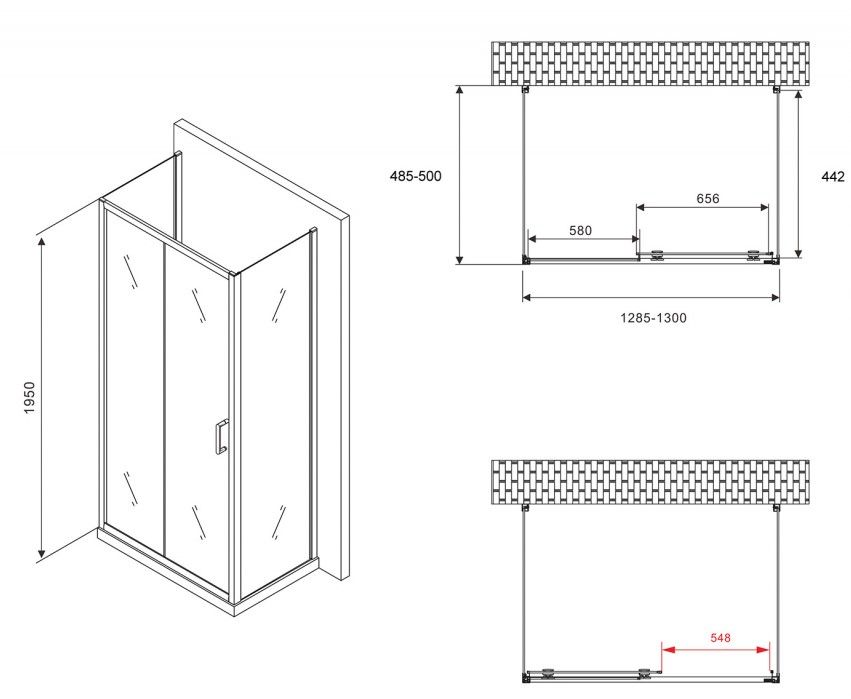 Душевой уголок ABBER Schwarzer Diamant AG30130B-S50B-S50B 130x50см чёрный