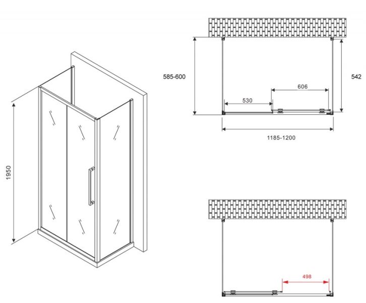 Душевой уголок ABBER Schwarzer Diamant AG30130H-S60-S60 120x60см хром