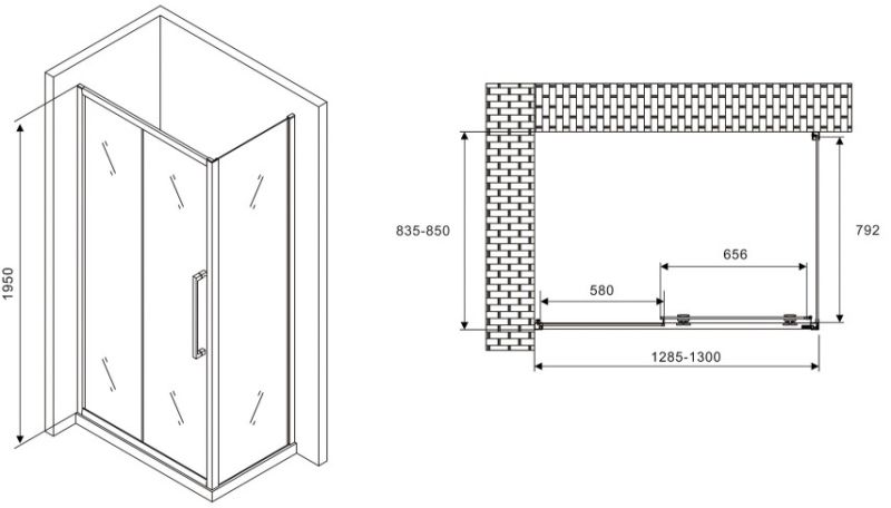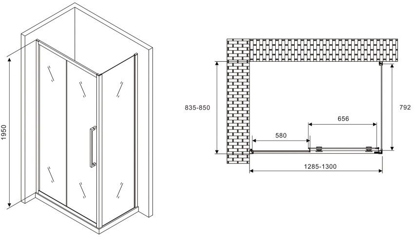 Душевой уголок ABBER Schwarzer Diamant AG30130MH-S85M 130x85см хром