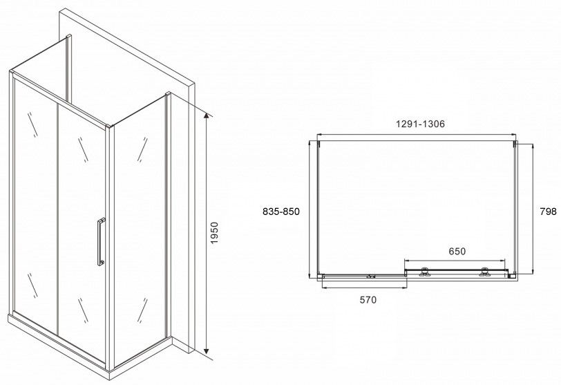 Душевой уголок ABBER Schwarzer Diamant AG30130MH-S85M-S85M 130x85см хром