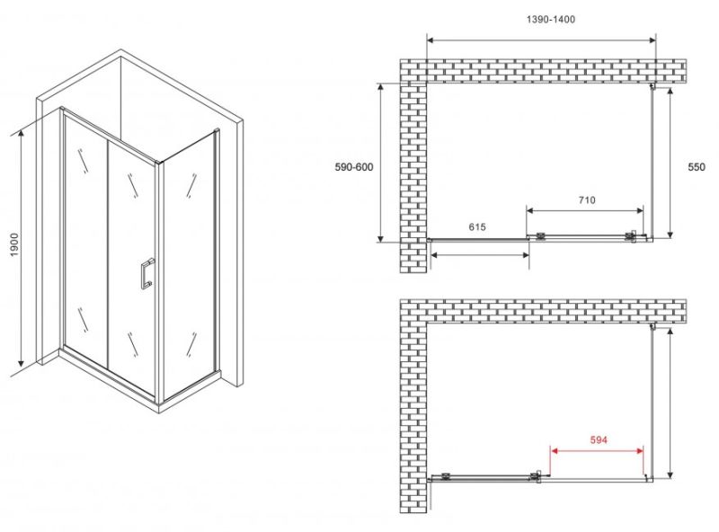 Душевой уголок ABBER Schwarzer Diamant AG301405-S605 140x60см хром