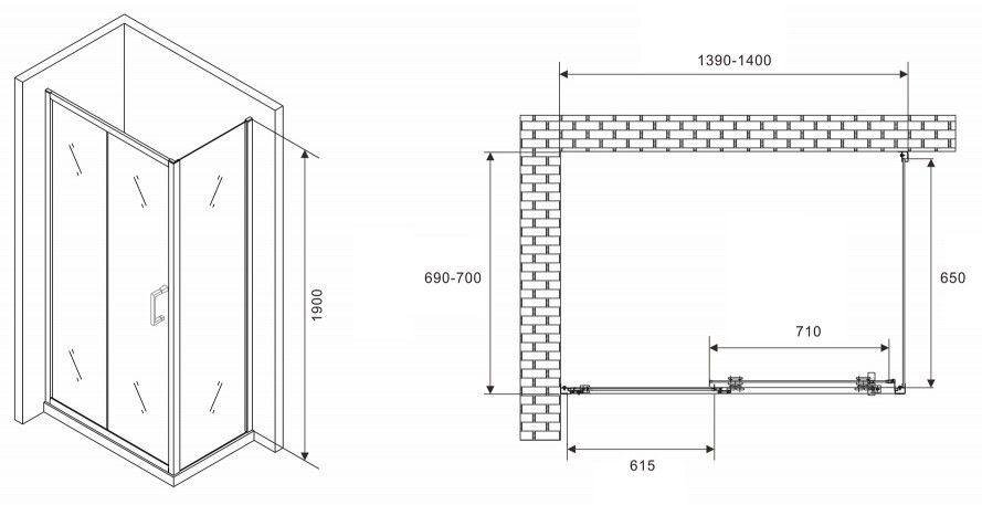 Душевой уголок ABBER Schwarzer Diamant AG301405-S705 140x70см хром