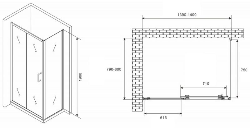 Душевой уголок ABBER Schwarzer Diamant AG301405-S805 140x80см хром