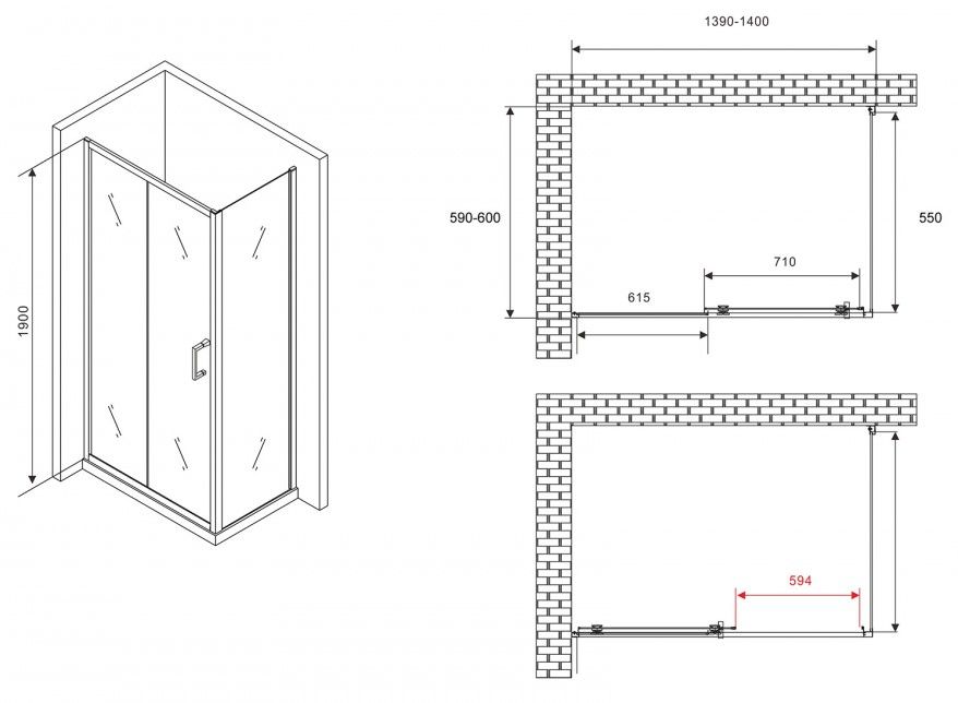 Душевой уголок ABBER Schwarzer Diamant AG30140B5-S60B5 140x60см чёрный