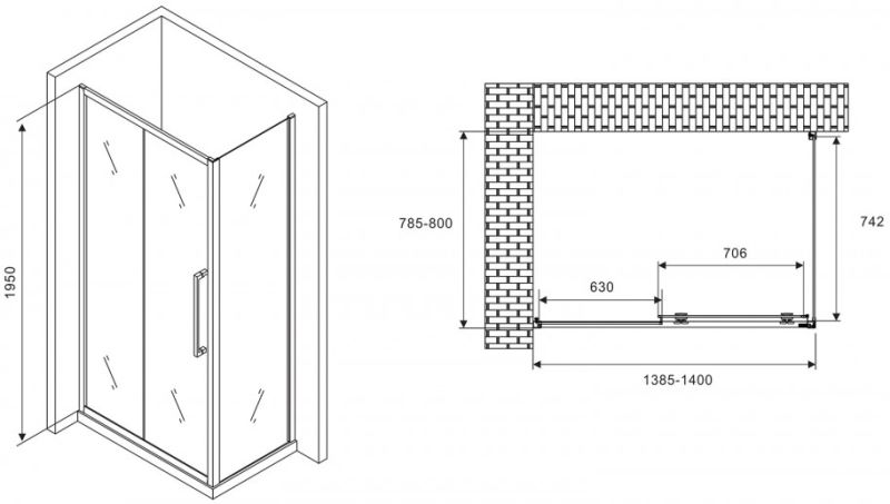 Душевой уголок ABBER Schwarzer Diamant AG30140H-S80 140x80см хром