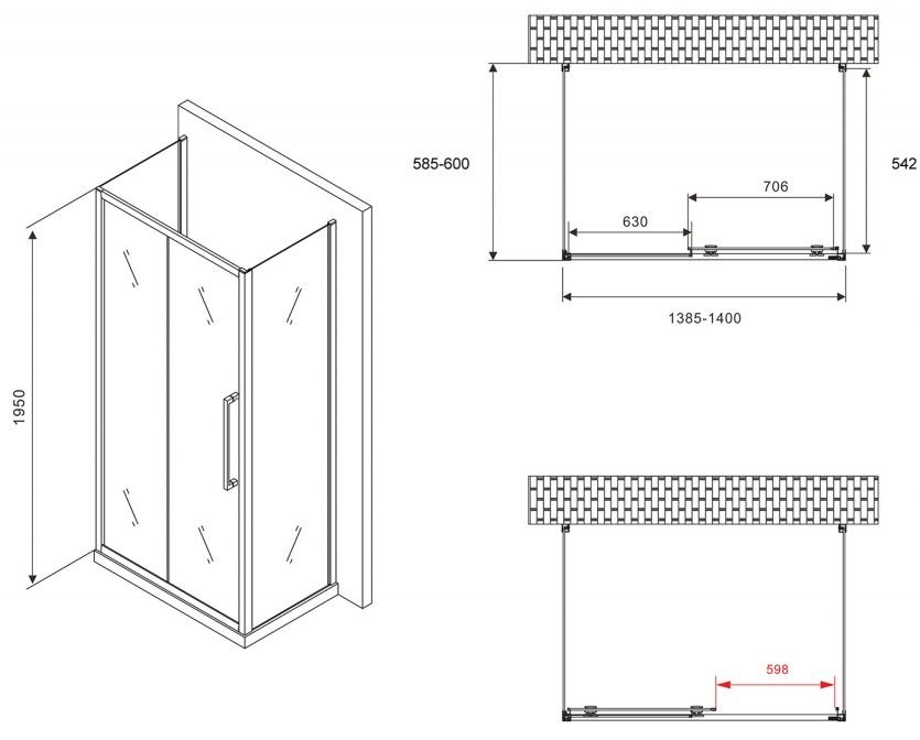 Душевой уголок ABBER Schwarzer Diamant AG30140MH-S60M-S60M 140x60см хром