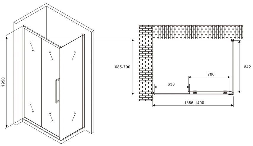 Душевой уголок ABBER Schwarzer Diamant AG30140MH-S70M 140x70см хром