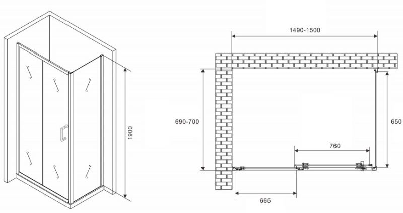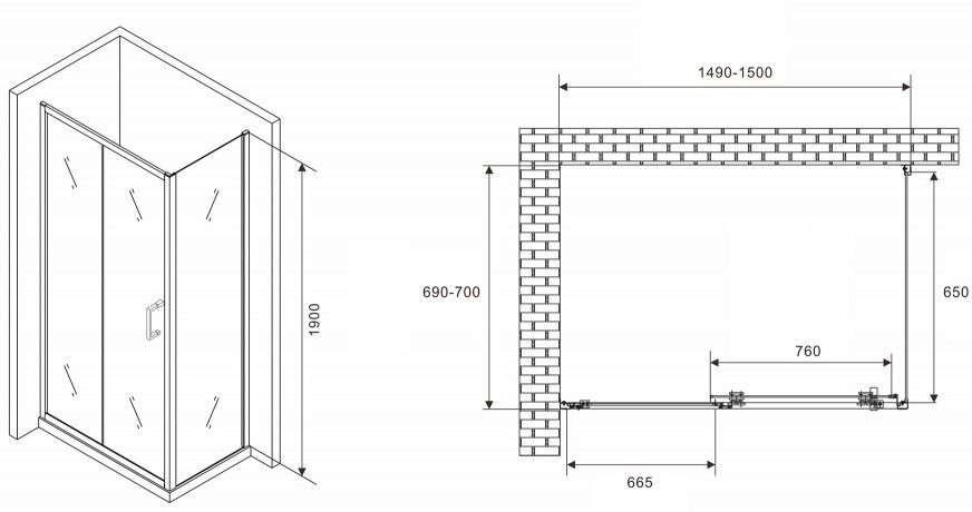 Душевой уголок ABBER Schwarzer Diamant AG301505-S705 150x70см хром