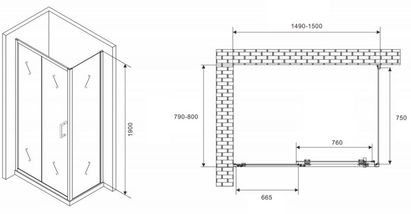 Душевой уголок ABBER Schwarzer Diamant AG301505-S805 150x80см хром