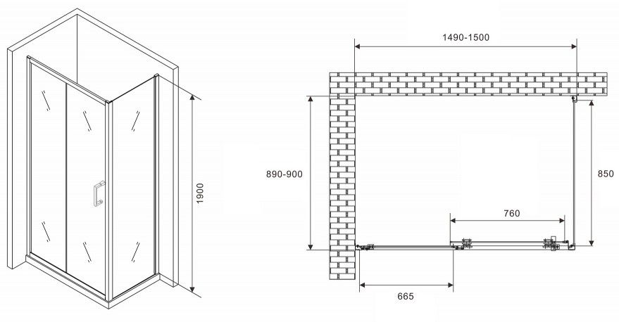 Душевой уголок ABBER Schwarzer Diamant AG301505-S905 150x90см хром