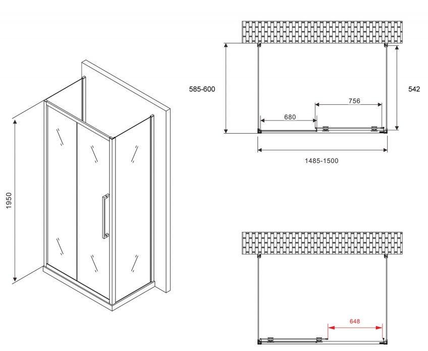 Душевой уголок ABBER Schwarzer Diamant AG30150H-S60-S60 150x60см хром