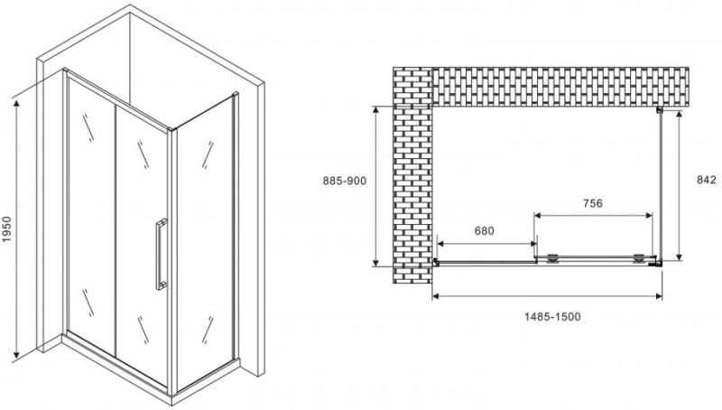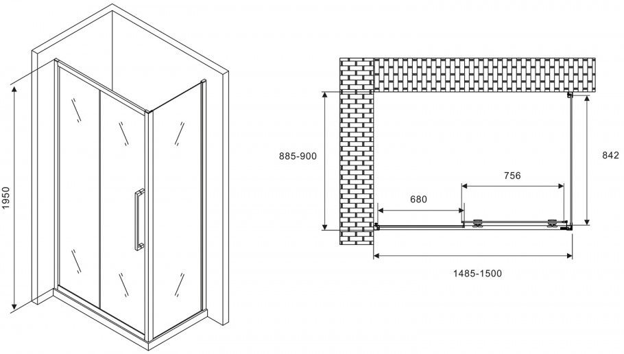 Душевой уголок ABBER Schwarzer Diamant AG30150H-S90 150x90см хром
