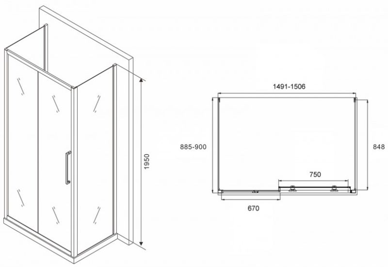 Душевой уголок ABBER Schwarzer Diamant AG30150H-S90-S90 150x90см хром