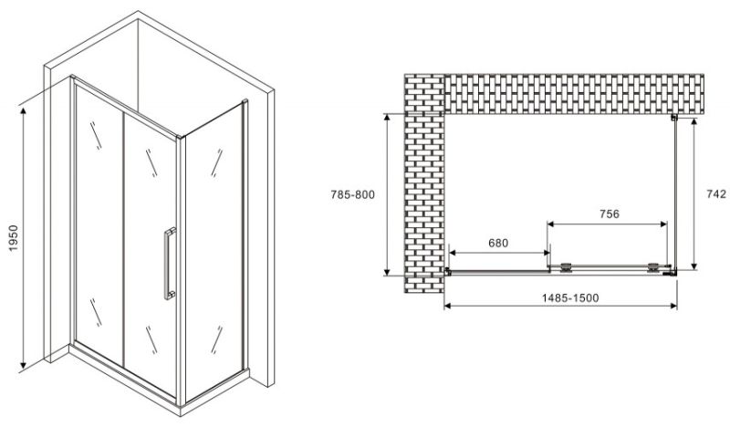 Душевой уголок ABBER Schwarzer Diamant AG30150MH-S80M 150x80см хром
