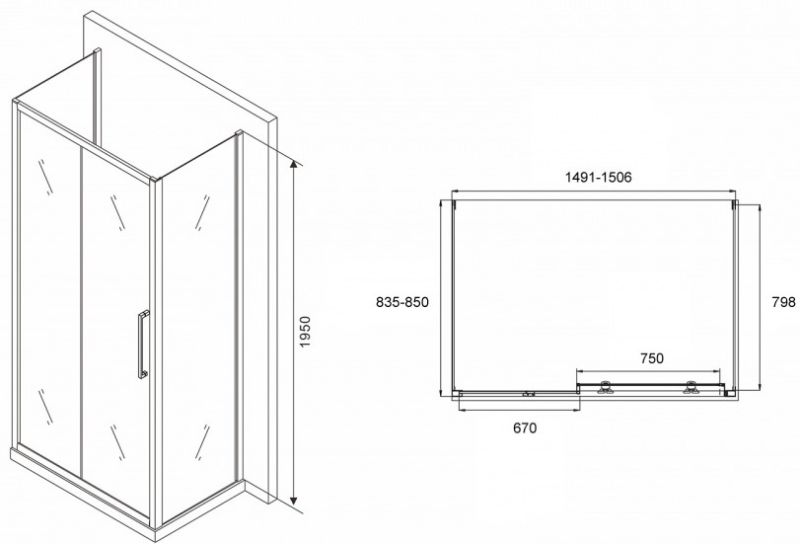 Душевой уголок ABBER Schwarzer Diamant AG30150MH-S85M-S85M 150x85см хром