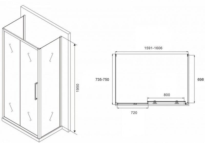 Душевой уголок ABBER Schwarzer Diamant AG30160BH-S75B-S75B 160x75см чёрный