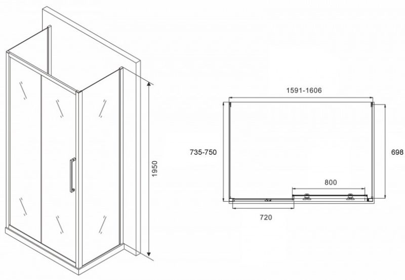 Душевой уголок ABBER Schwarzer Diamant AG30160H-S75-S75 160x75см хром