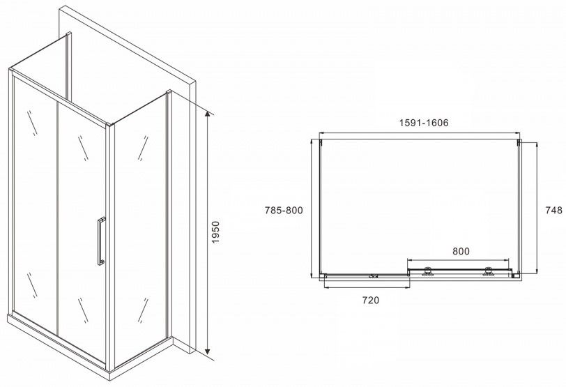 Душевой уголок ABBER Schwarzer Diamant AG30160MH-S80M-S80M 160x80см хром
