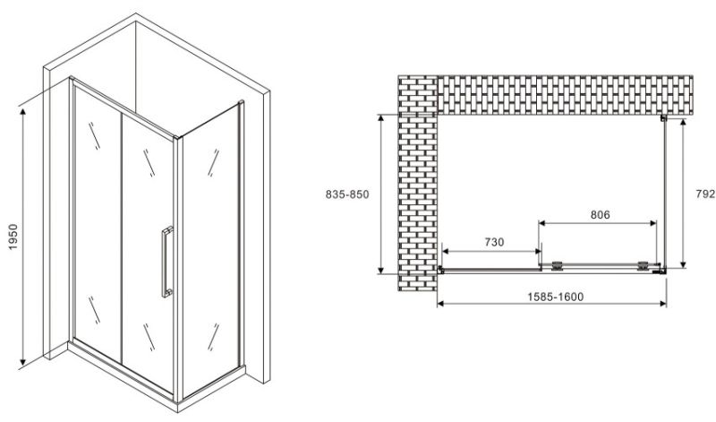 Душевой уголок ABBER Schwarzer Diamant AG30160MH-S85M 160x85см хром