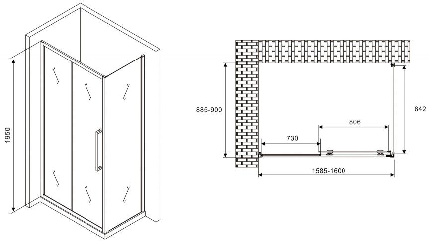 Душевой уголок ABBER Schwarzer Diamant AG30160MH-S90M 160x90см хром
