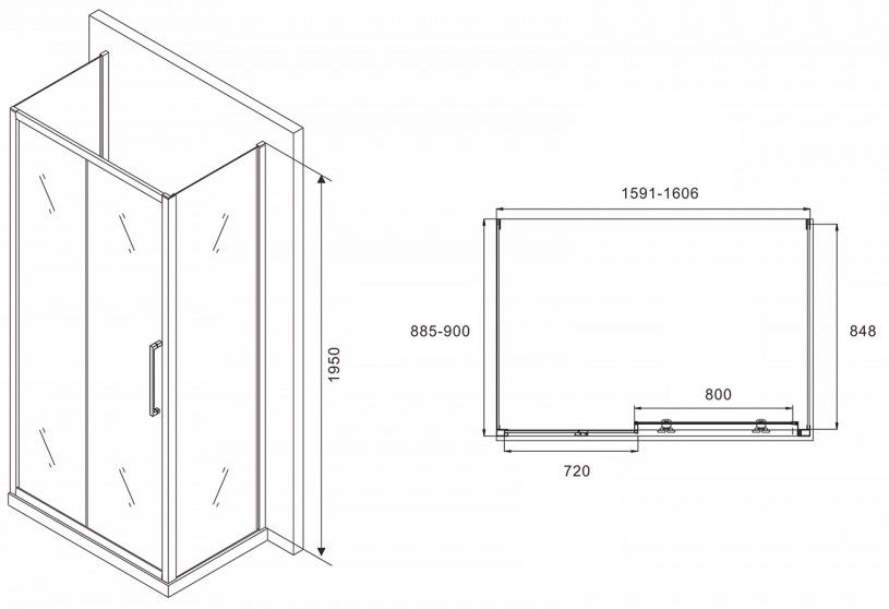 Душевой уголок ABBER Schwarzer Diamant AG30160MH-S90M-S90M 160x90см хром