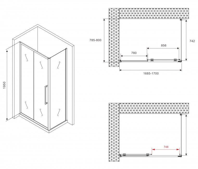 Душевой уголок ABBER Schwarzer Diamant AG30170BMH-S80BM 170x80см чёрный купить