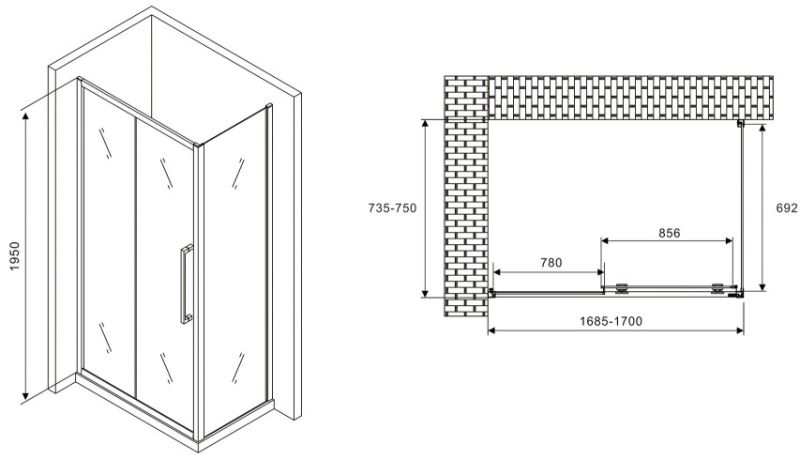 Душевой уголок ABBER Schwarzer Diamant AG30170H-S75 170x75см хром