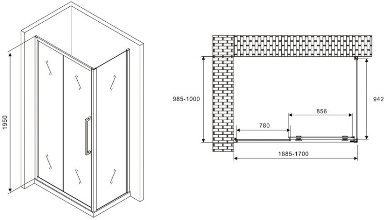 Душевой уголок ABBER Schwarzer Diamant AG30170MH-S100M 170x100см хром купить