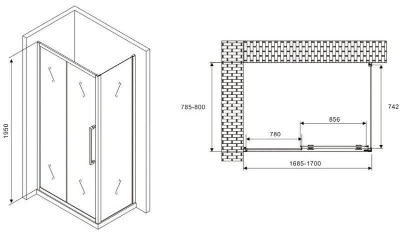 Душевой уголок ABBER Schwarzer Diamant AG30170MH-S80M 170x80см хром купить