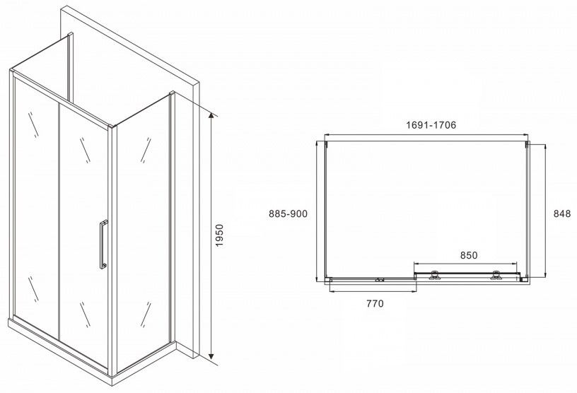 Душевой уголок ABBER Schwarzer Diamant AG30170MH-S90M-S90M 170x90см хром
