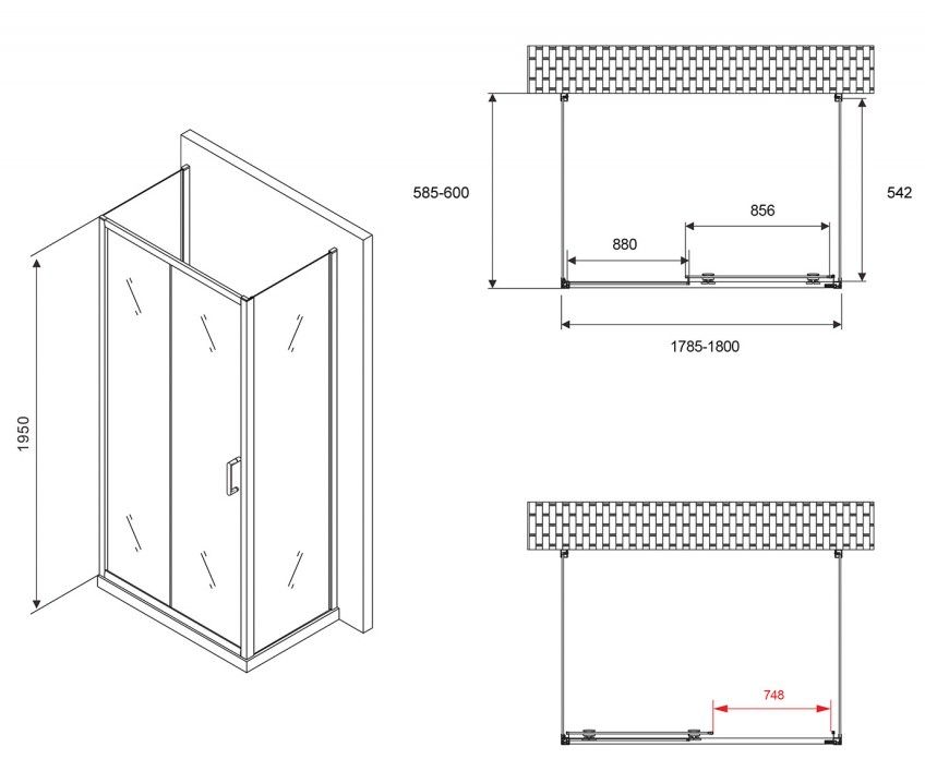 Душевой уголок ABBER Schwarzer Diamant AG30180B-S60B-S60B 180x60см чёрный