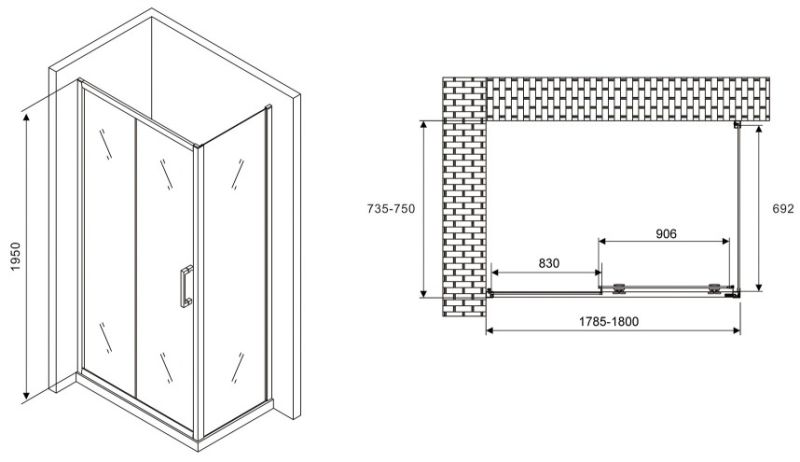Душевой уголок ABBER Schwarzer Diamant AG30180B-S75B 180x75см чёрный