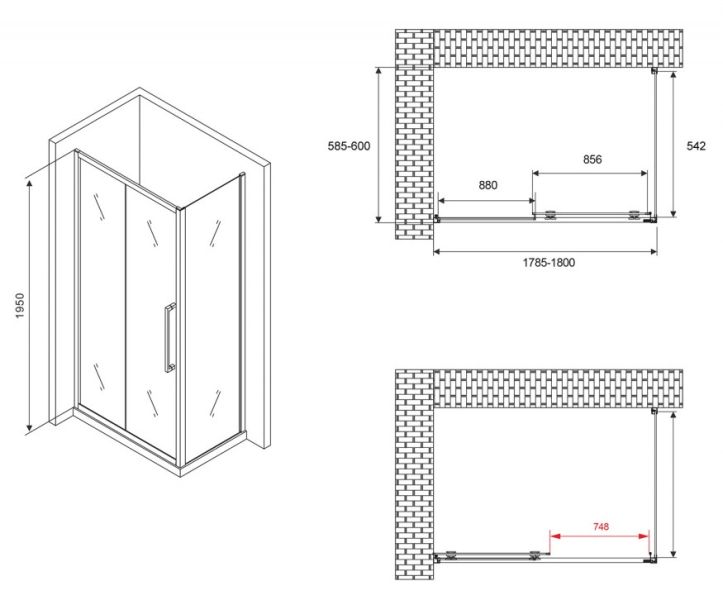 Душевой уголок ABBER Schwarzer Diamant AG30180BH-S60B 180x60см чёрный купить