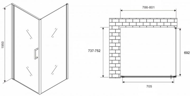 Душевой уголок ABBER Sonnenstrand AG04080M-S75M 80x75см хром