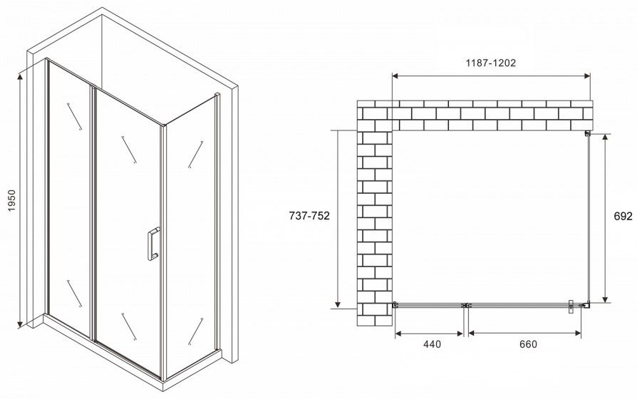 Душевой уголок ABBER Sonnenstrand AG04120MS-S75M 120x75см хром