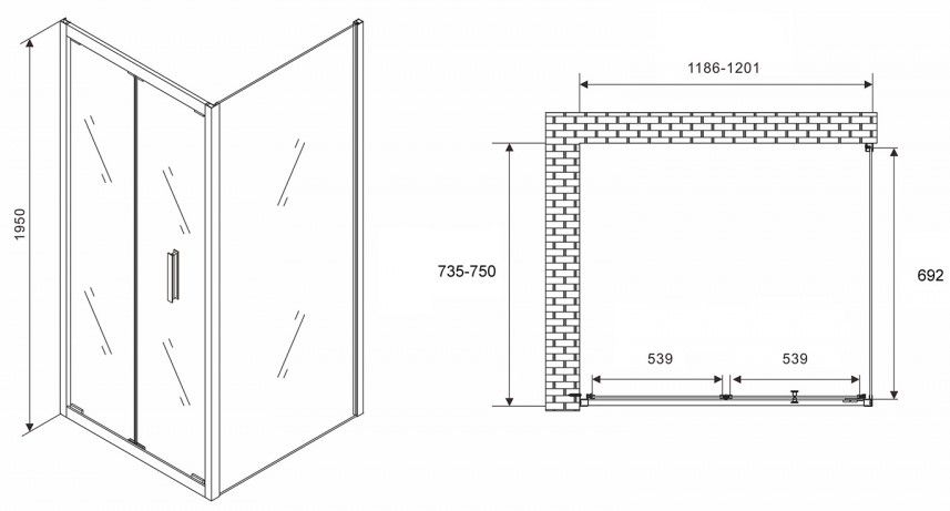 Душевой уголок ABBER Sonnenstrand AG07120-S75 120x75см хром