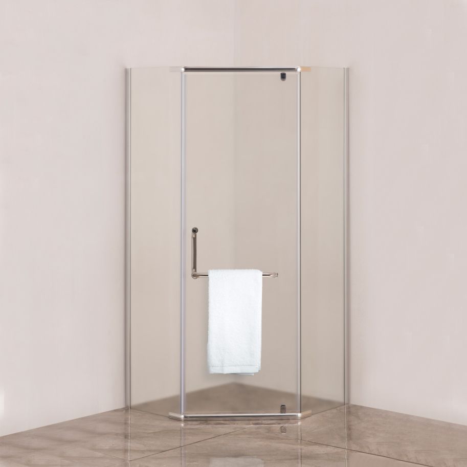 Организовать душевую зону стало легко благодаря душевому уголку Agger A03-090MCR/G. Монтаж возможен как на поддон (арт.A03-090TCR/T - приобретается дополнительно), так и напольный. Размер уголка подойдет для большинства небольших ванных комнат и составляет 89х89х195 см при стандартной форме "четверть круга". Распашная дверь (правосторонняя) с силиконовыми уплотнителями и магнитной лентой, стекла матовые закаленные толщиной 6 мм, алюминиевый профиль с покрытием хром. С внешней стороны двери - держатель для полотенца. Ширина входа - 61,8 см.