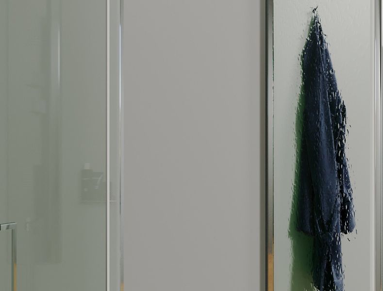 Исполнение полотна двери: прозрачное Optiwhite стекло, толщиной 8 мм.