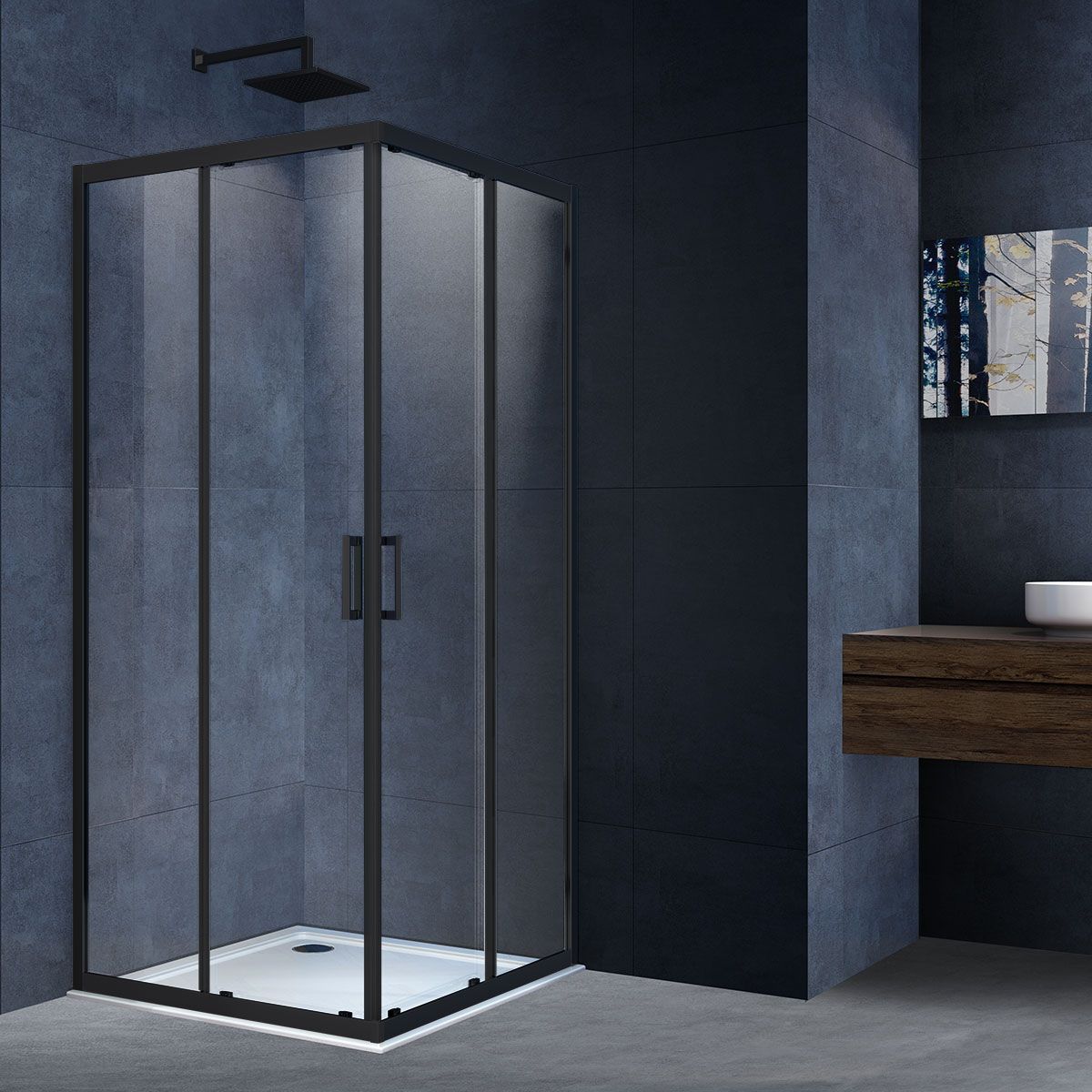 Душевой уголок Vincea Alpha VSS-3AL900CLB, 900*900, черный, стекло прозрачное
