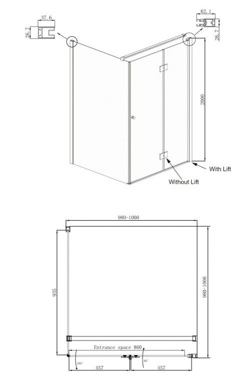 - Ширина входа: распашная часть 45.7 см, складная часть 86 см