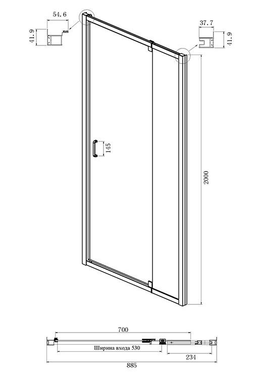 - Ширина входа: 53 см