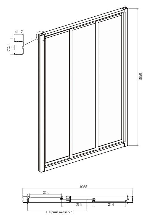 - Конструкция дверей: раздвижная