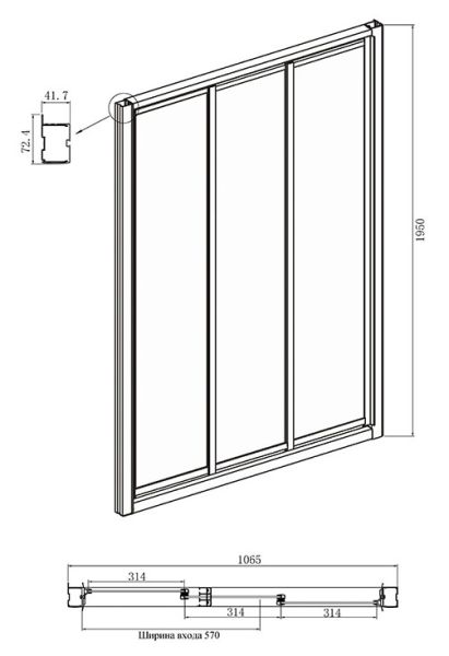 - Ширина входа: 57 см