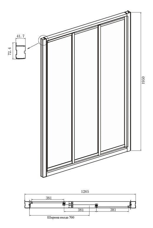 - Конструкция дверей: раздвижная