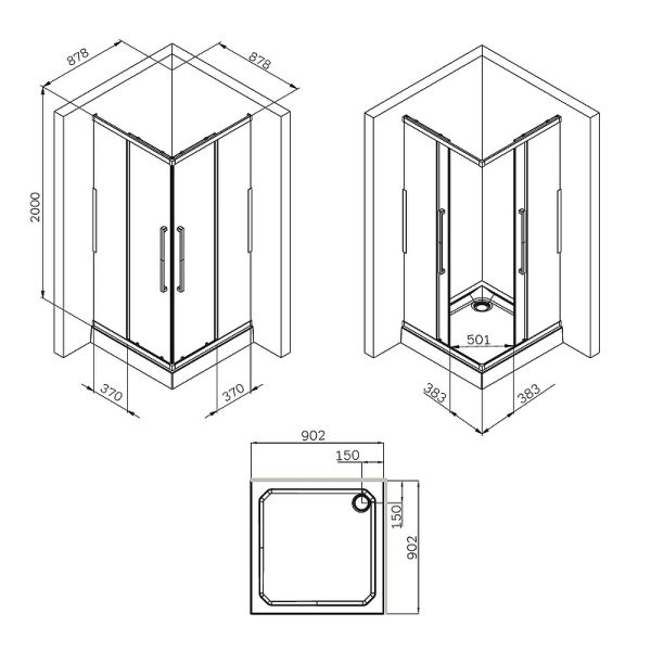 Душевой уголок AM.PM Func W84G-403-9090-BТ 90х90 профиль черный матовый стекло прозрачное Подробнее