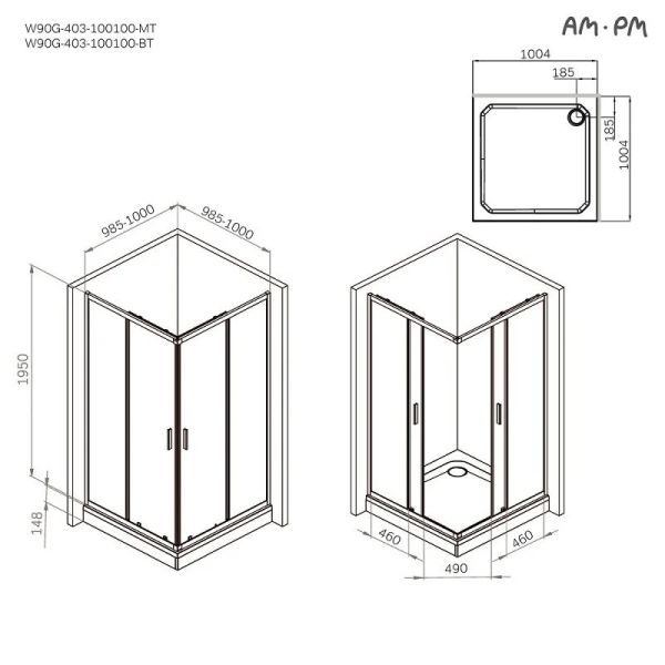 Душевой уголок Am.Pm Gem W90G-403-100100-MT 100x100 см без поддона хром матовый