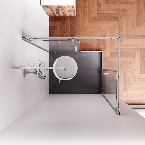 Ограждение имеет сверхпрочные закаленные стёкла. Толщина фиксированных стекол составляет 4 мм, двери имеют увеличенную толщину 5 мм. Невероятно плавное и легкое открывание двери благодаря двойным усиленным роликам из ABS-пластика. Нижние ролики обладают функцией быстрого снятия для самой лёгкой уборки. Магнитные уплотнители дверей делают ограждение полностью герметичным и предотвращают попадание воды за пределы душевой зоны.