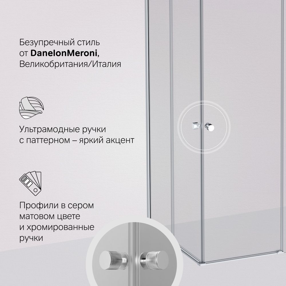 Прочная конструкция с надежными роликами увеличенного диаметра для плавного хода двери и закаленным стеклом. Толщина дверей – 6 мм., стенок – 4 мм. Беспрецедентно стойкое покрытие: надежный алюминиевый профиль окрашен методом порошкового нанесения при высокой температуре, благодаря чему краска ложится на профиль идеально ровно, а также проникает в структуру самого металла.