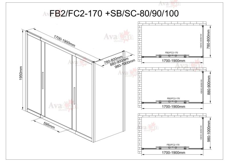 Душевой уголок AvaCan FB2 170-190 + SB100 MT чёрный
